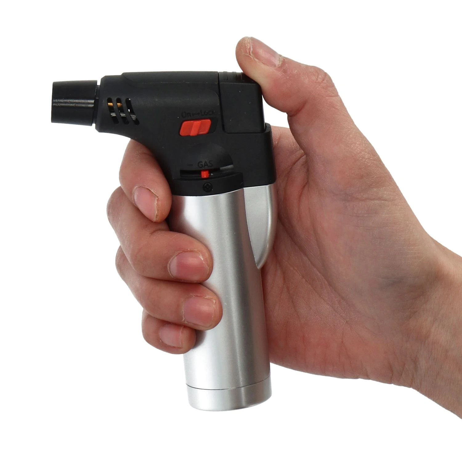 Deze multifunctionele turbo brander heeft een krachtige regelbare vlam, is navulbaar en voorzien van een ontstekingsknop. Ook is de grootte van de vlam instelbaar met behulp van de vlamregelaar links of rechts in te drukken.