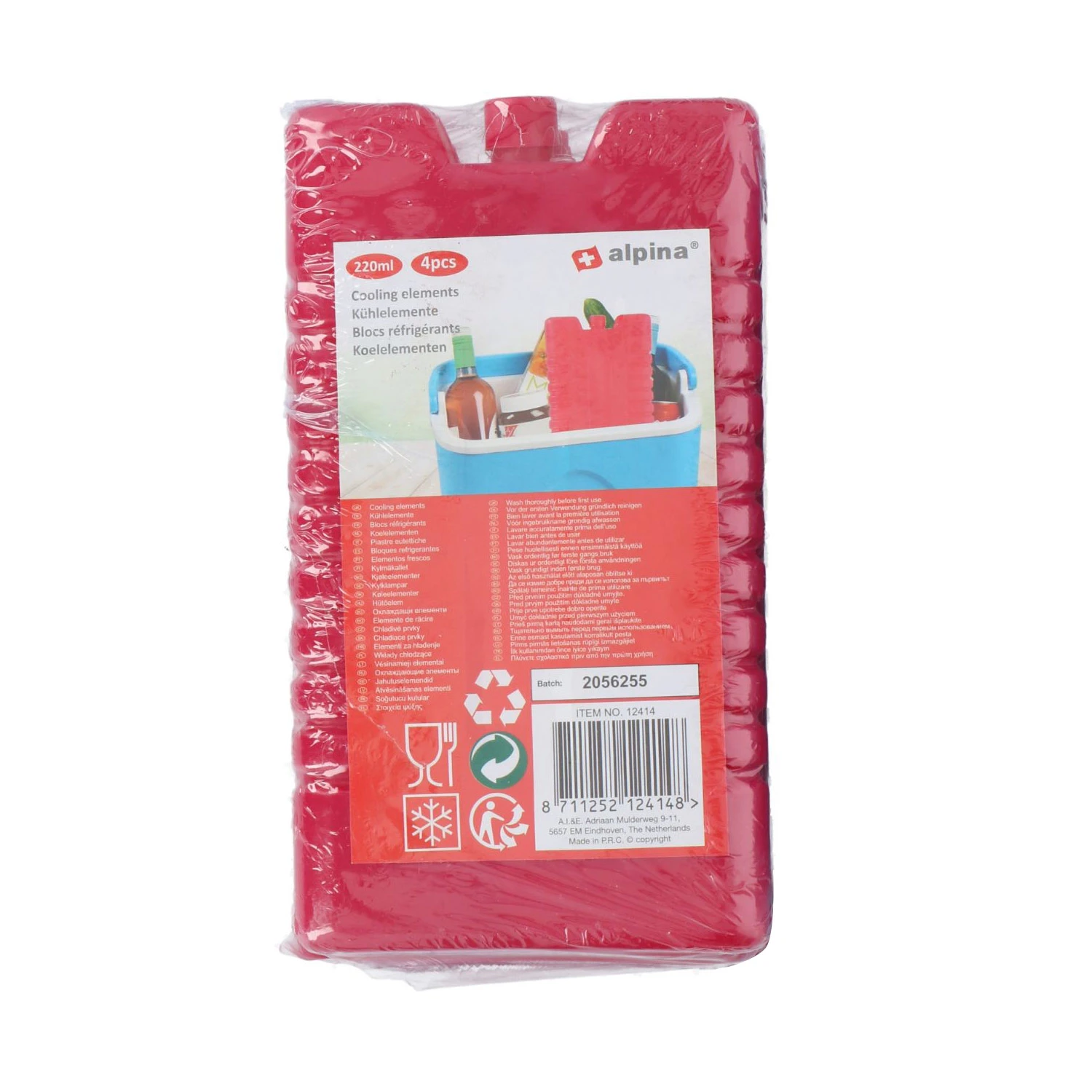 Nooit meer last van lauwe of opgewarmde drankjes met de Alpina koelelementen! Deze koelelementen, met elk een inhoud van 220 ml, zorgen er gegarandeerd voor dat jouw drankjes lekker fris en koel blijven voor de picknick, lange autorit, of op de camping of het strand! 4 stuks.
