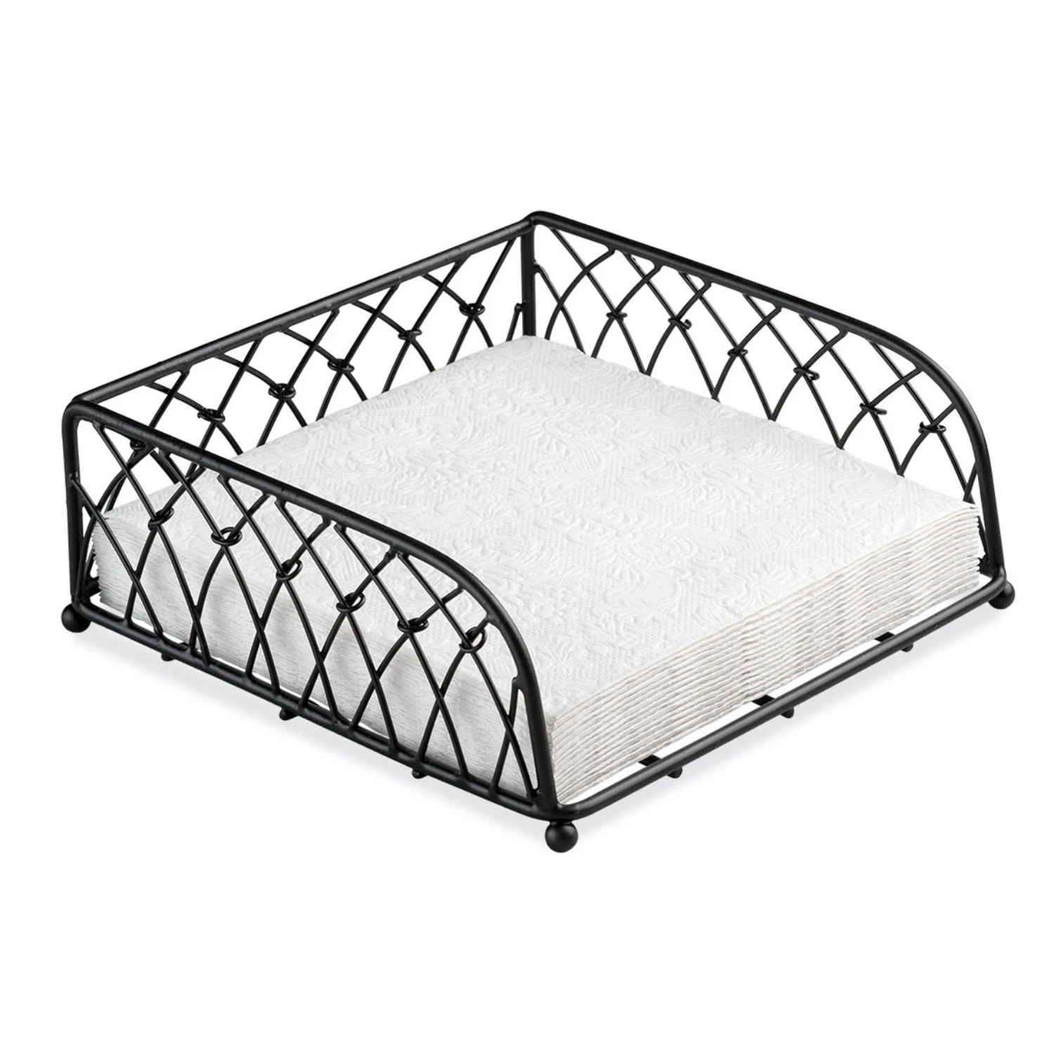 Een elegante Servethouder van Ambiente. De houder is perfect geschikt is voor grote servetten, welke opgevouwen precies in deze houder passen. Deze servethouder is zwart van kleur en de zijkanten hebben een patroon van geknoopte draden.