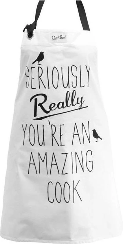 Koken in stijl doe je met het Dutch Rose Amsterdam schort. Met tekstopdruk: Serously really you’re an amazing cook. Het schort is 75 x 80 cm lang.