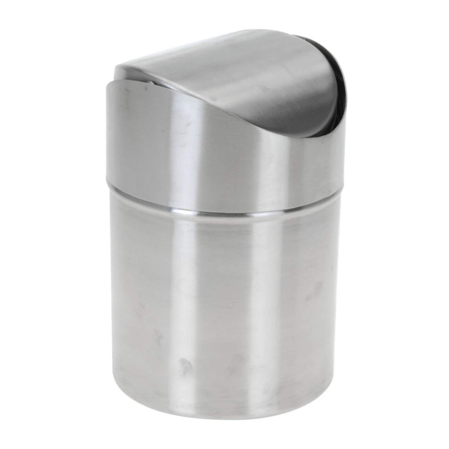 Voor allerlei kleine prullen, zoals snoepwikkels, bonnetjes en plukken haar heb jij deze tafelafvalbak van Excellent Houseware! Deze ronde afvalbak is gemaakt van RVS, heeft een diameter van 12,5 cm en is bijna 20 cm hoog. Door het handige swingdeksel is dit prullenbakje ontzettend makkelijk in gebruik, en met een inhoud van 1,5 liter is hij perfect voor op tafel of op het aanrecht!