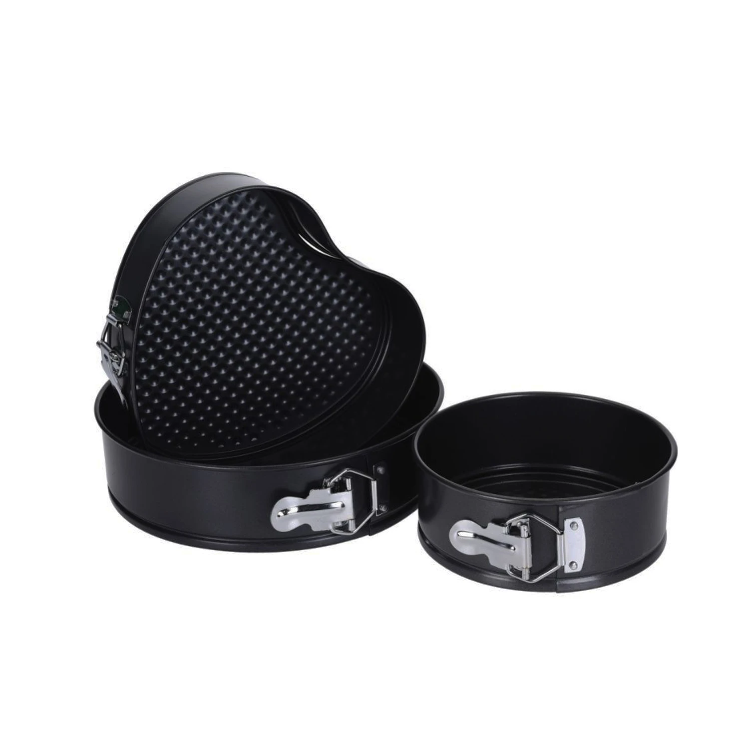 Jij bakt de lekkerste taarten met de springvormen set van La Cucina. Deze driedelige set bevat 2 ronde springvormen, met diameters van 17 en 24cm, en 1 springvorm in hartvorm, met een formaat van 22x20cm. Alle springvormen zijn zwart van kleur en hebben antikleef. De vormen zijn geschikt voor bakken tot 220 graden Celsius.