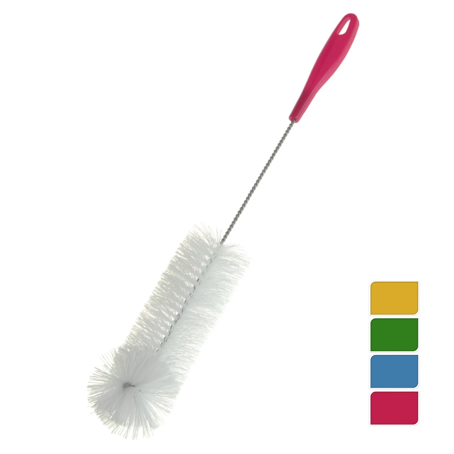 Gebruik de flessenborstel om gemakkelijk flessen of vazen schoon te maken. Hij is vooral handig voor diepe flessen of vazen waar je met een doek of schuurspons niet bij komt. De borstel heeft een afmeting van 38 cm en is een assorti van 4 kleuren.