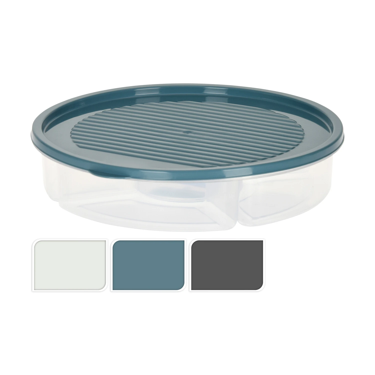 Berg etenswaren gemakkelijk op in deze voorraaddoos. De voorraaddoos heeft een inhoud van 2 liter en heeft een vakverdeling en een deksel. Er zijn 3 verschillende kleuren beschikbaar.
