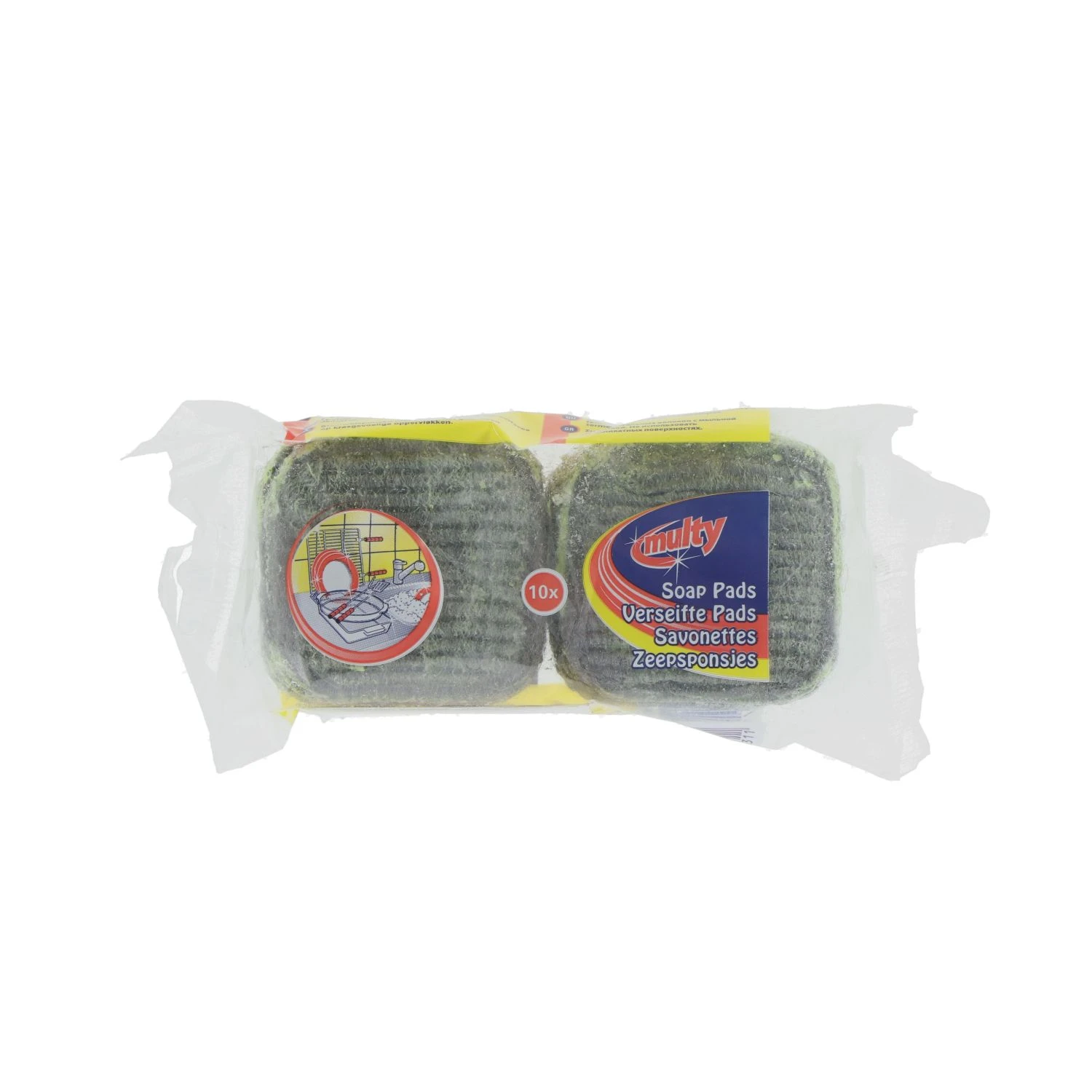 Met zeep geïmpregneerde Multy staalwol pads, voor langdurig gebruik. Perfect voor het grondig reinigen van niet-delicate voorwerpen in de keuken, zoals roestvrijstalen pannen. De zeepspons is ook uitermate geschikt voor het verwijderen van hardnekkige resten op (tuin)gereedschap. Afmeting: 7 x 6,5 x 1 cm.