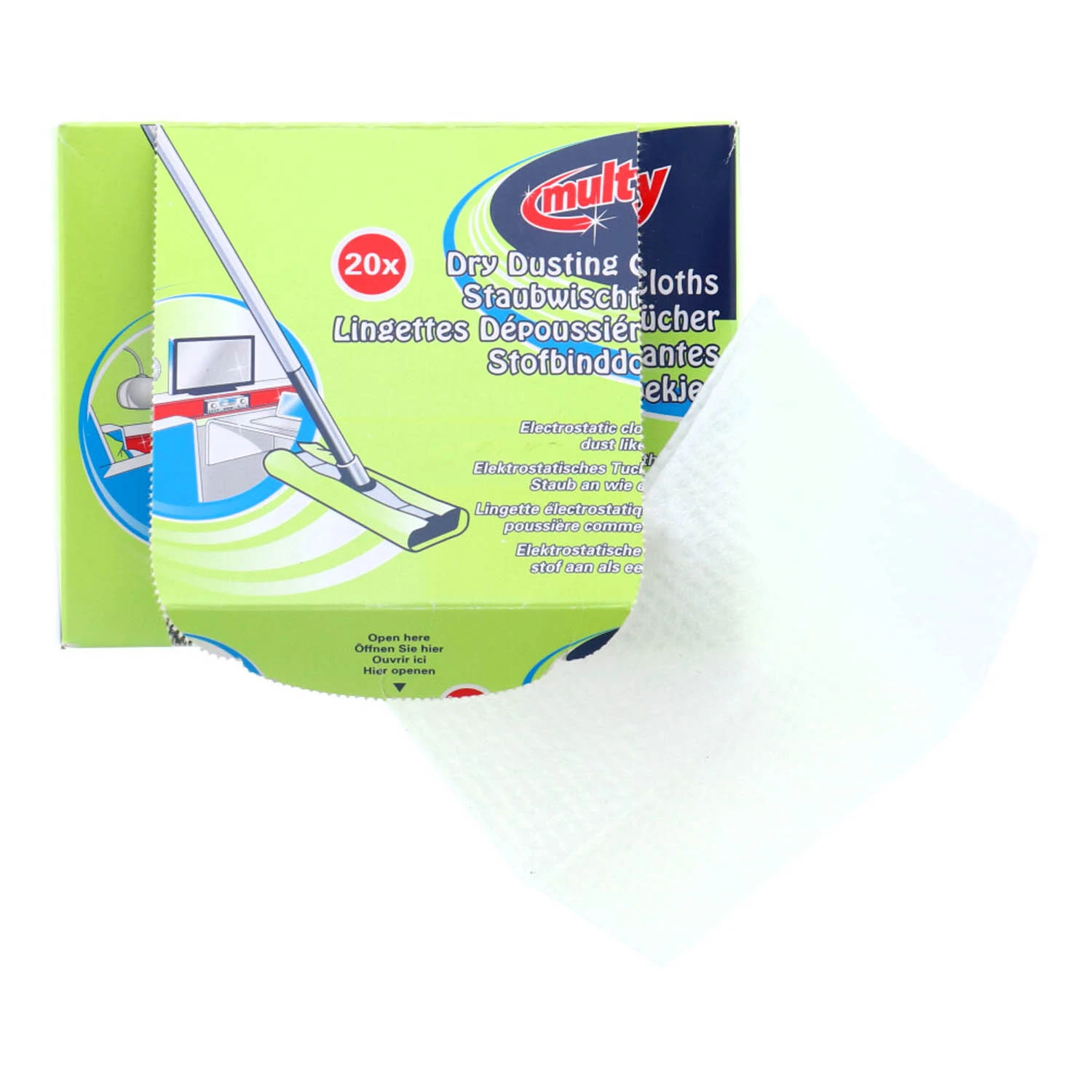 Gebruik deze Multy stofbinddoekjes om stof mee op te vangen op verschillende oppervlakken. Pak een doekje met de hand er haal het stof weg van beelschermen of bevestig een doekje onder een dweil en veeg het stof gemakkelijk weg. In de verpakking zitten 20 doekjes.
