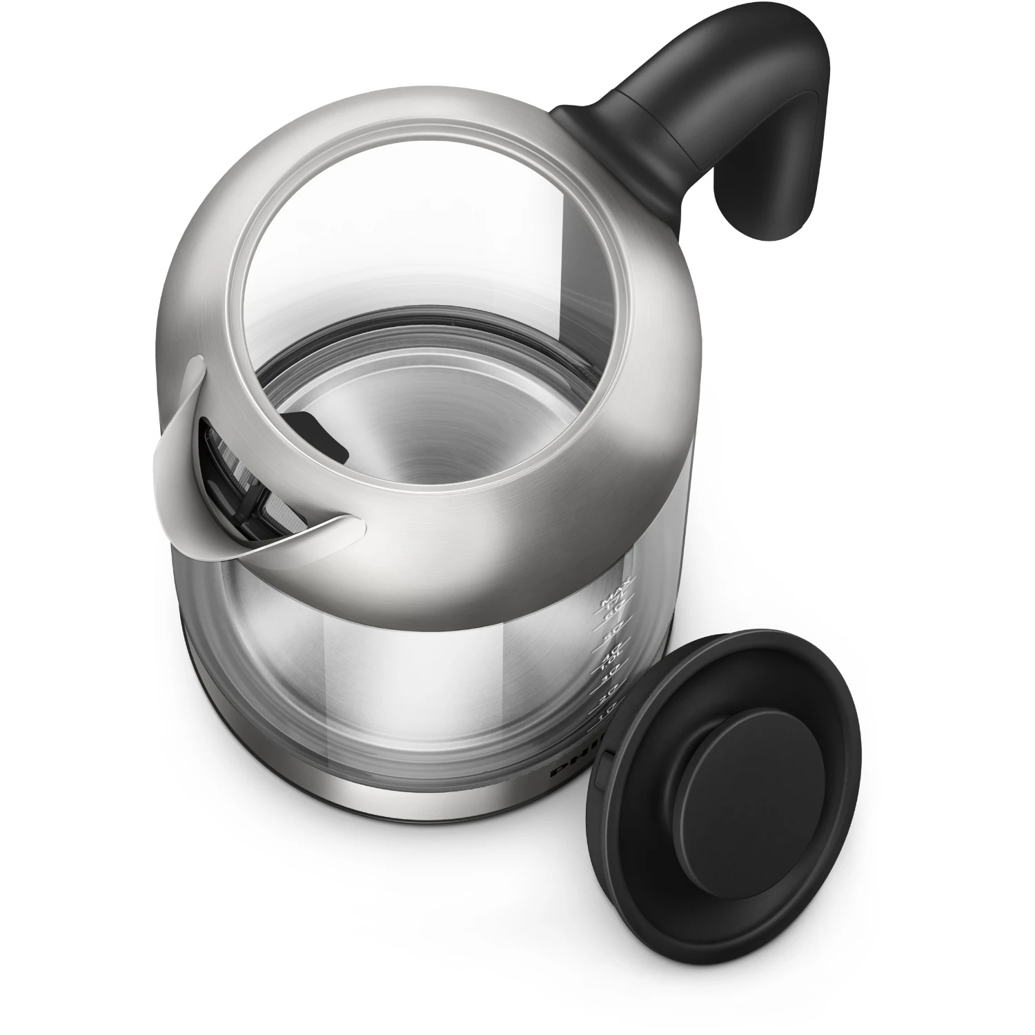 Deze Philips waterkoker uit de 5000 Series is gemaakt van kristalhelder glas. De moderne waterkoker heeft een inhoud van 1,7 liter en heeft een blauw indicatielampje dat aangeeft wanneer de waterkoker aanstaat, daarnaast geeft het lampje het kokende water een mooi blauw effect. Drink jij in de ochtend graag een kopje thee voor je aan de dag begint? Dankzij de eenkopsaanduiding weet je altijd dat je precies genoeg water kookt. Hierdoor kan energie en water worden bespaard en draag je bij aan een beter milieu.