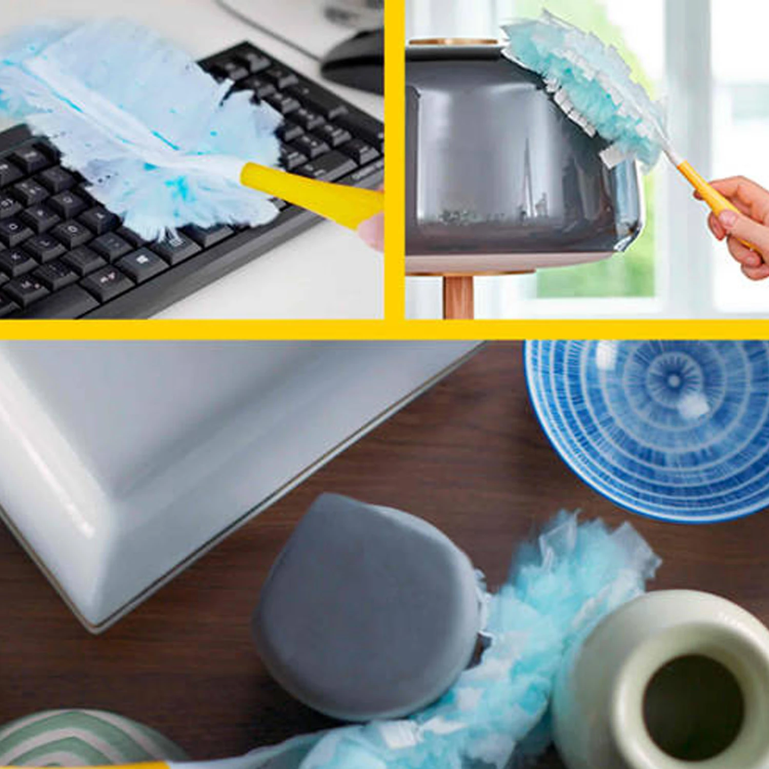 Neem maar afscheid van stof, vuil en haar. De Swiffer Dusters zijn het middel om stof, haar en allergenen van huisstofmijten, katten en honden op oppervlakken te vangen en vast te houden dankzij de duizenden licht gecoate pluizige vezels. De Swiffer stofdoekjes beschikken over unieke vezels die van vorm veranderen. Hierdoor kun je bij de moeilijkst bereikbare plekjes komen om van bijna elk oppervlak stof en haar te verwijderen zonder het in huis te verspreiden. Handige tips: Ze zijn vooral handig om het haar van je huisdieren, dat constant uitvalt, te verwijderen of als je last hebt van een stofallergie. Voor je het weet, ga je afstoffen nog leuk vinden: zo goed werkt het. Gebruik de Swiffer Duster navullingen met het Swiffer Duster handvat.
