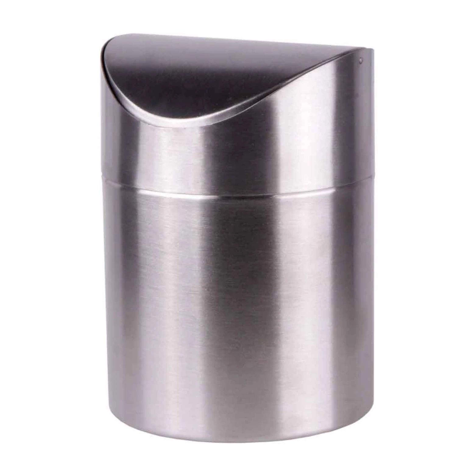 Ben jij op zoek naar een klein tafel afvalbakje, dan ben je hier op de juiste plek! Dit mat RVS prullenbakje met swing-deksel is perfect voor op tafel, en kan voor allerlei doeleinden gebruikt worden: het stof uit jouw wasdroger’s filter kan er in, maar je kunt hem ook gebruik wanneer jij de punten van jouw potloden gaat slijpen, of als je kluwen vol met garen over tafel verspreidt hebt liggen vanwege een naaiproject! Formaat:Â 16.5x12cm.Â