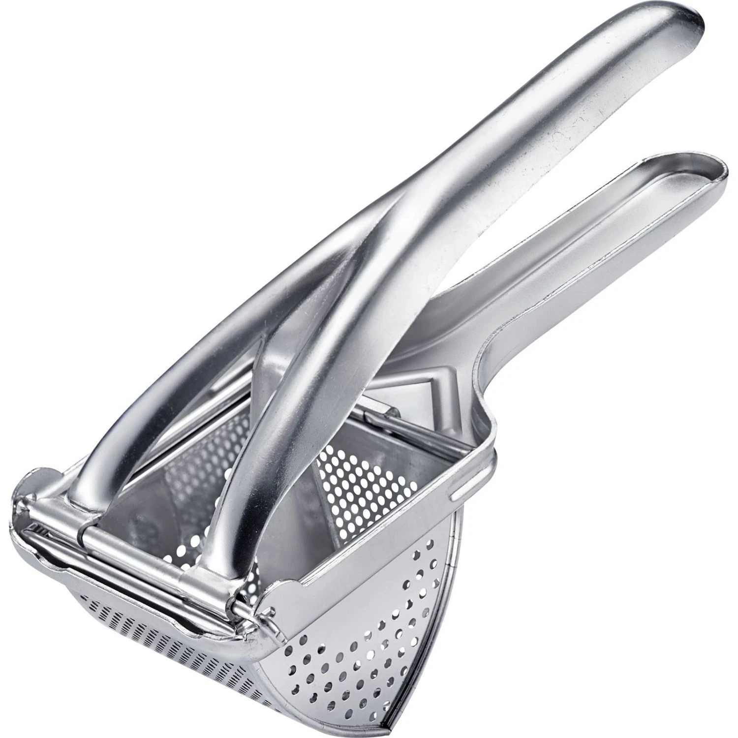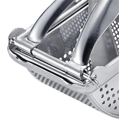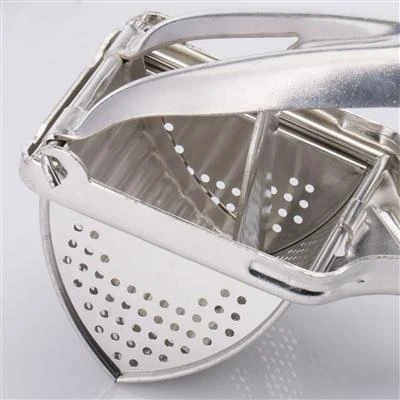 De stevige aardappelpers in driehoekige vorm met fijne ronde gaten wordt zowel gebruikt voor de snelle productie van puree als voor het bereiden van deeg voor aardappelknoedels of gnocchi-deeg. Dankzij de Y-vormige en aangenaam geronde handgrepen is hij gemakkelijk te gebruiken zonder enige fysieke inspanning. De aardappelpers, die in twee delen kan worden gedemonteerd, reinigt u het beste met de hand.